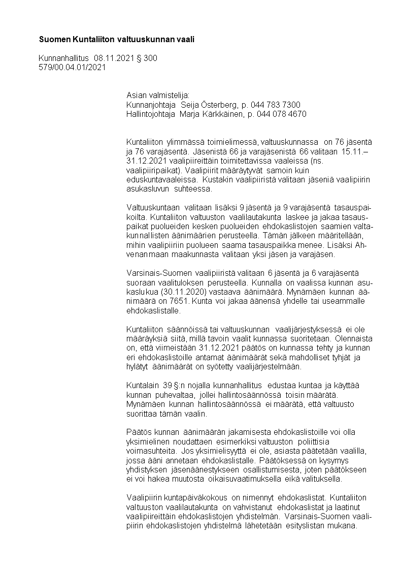 Pöytäkirja 08.11.2021/Pykälä 300