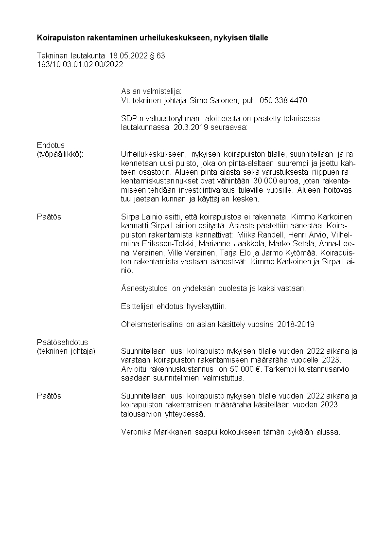 Pöytäkirja 18.05.2022/Pykälä 63