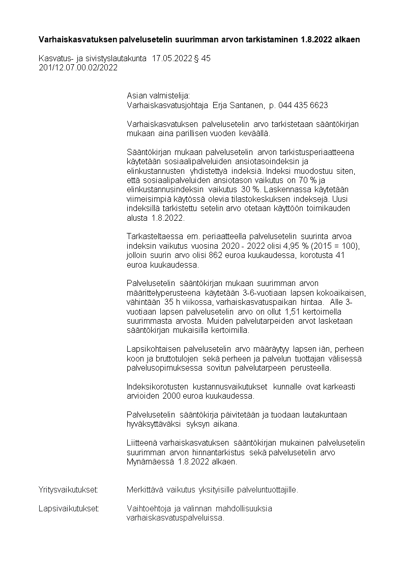 Pöytäkirja 17.05.2022/Pykälä 45