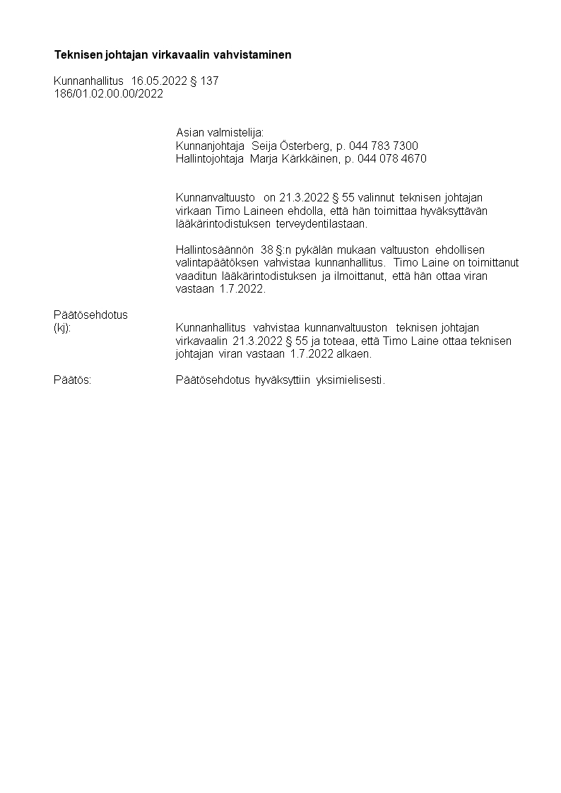 Pöytäkirja 16.05.2022/Pykälä 137