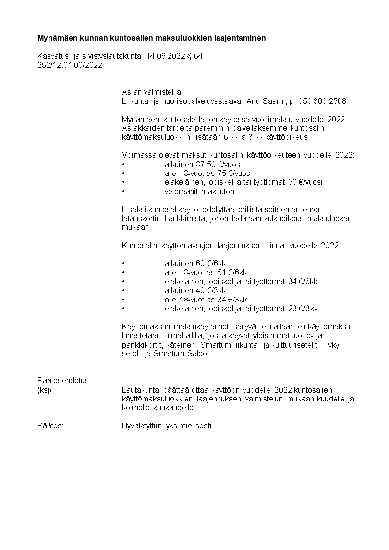 Pöytäkirja 14.06.2022/Pykälä 64