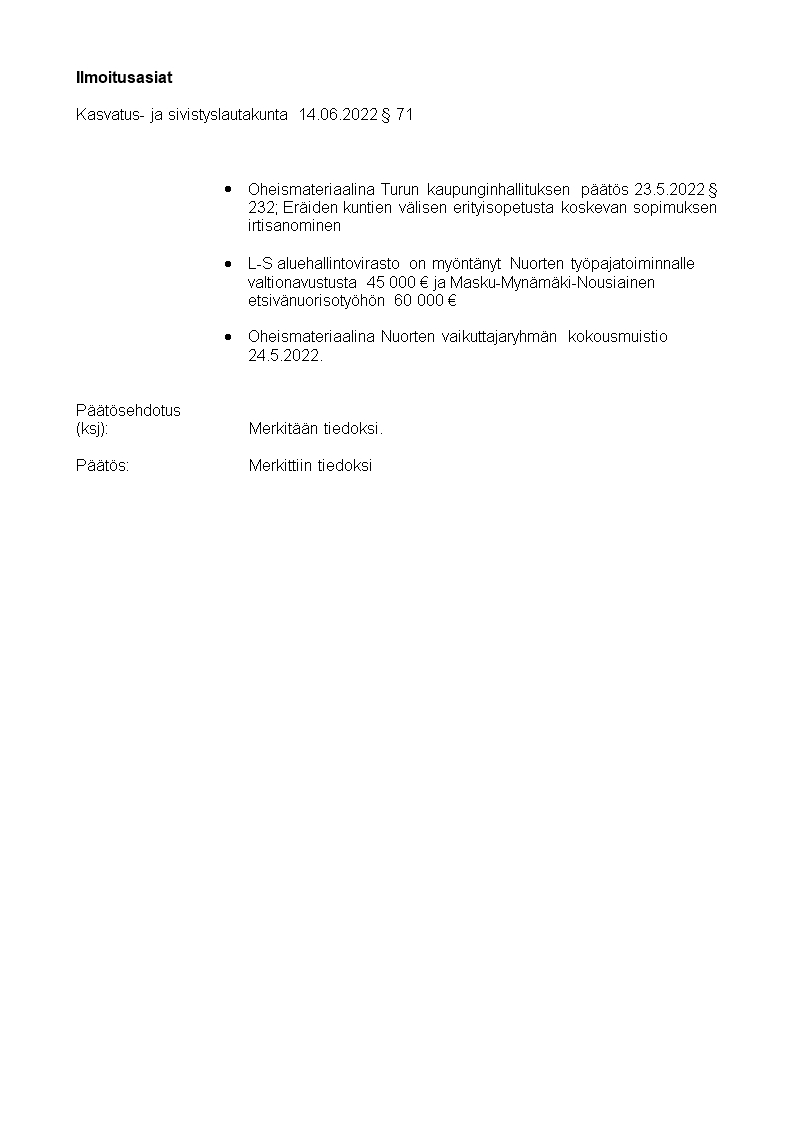 Pöytäkirja 14.06.2022/Pykälä 71