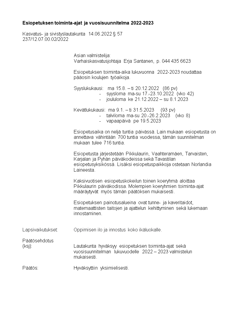 Pöytäkirja 14.06.2022/Pykälä 57