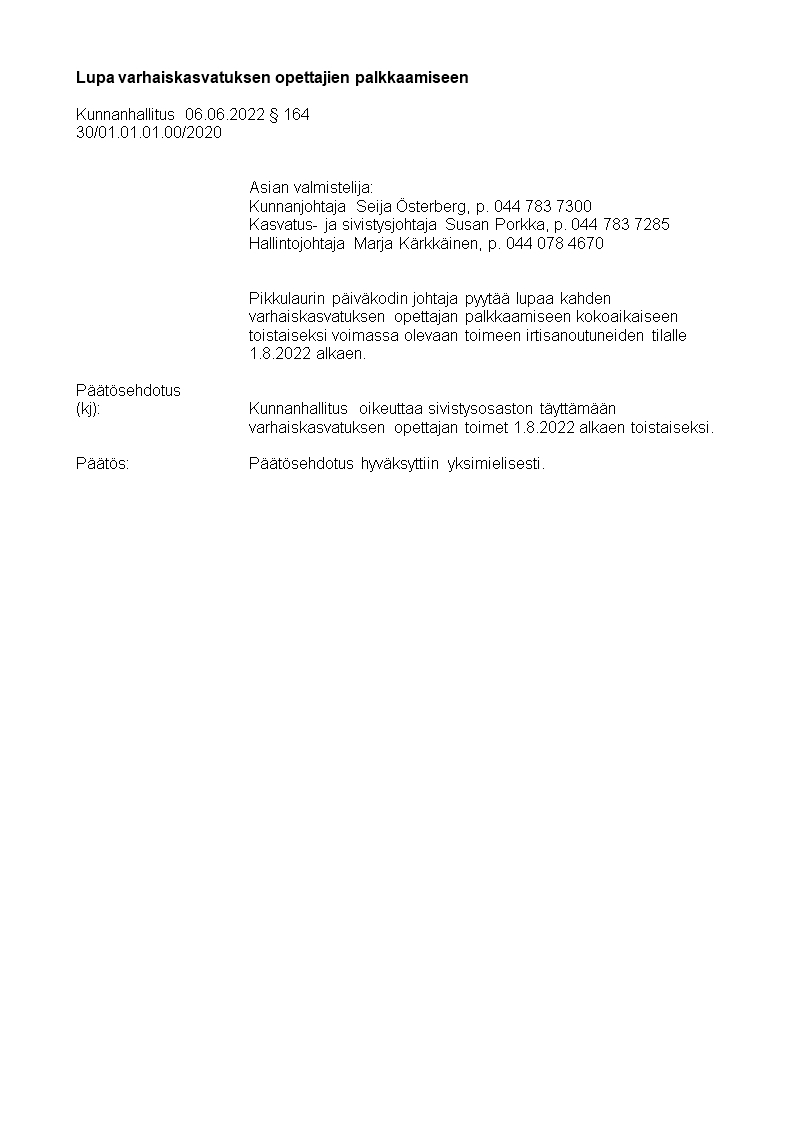 Pöytäkirja 06.06.2022/Pykälä 164