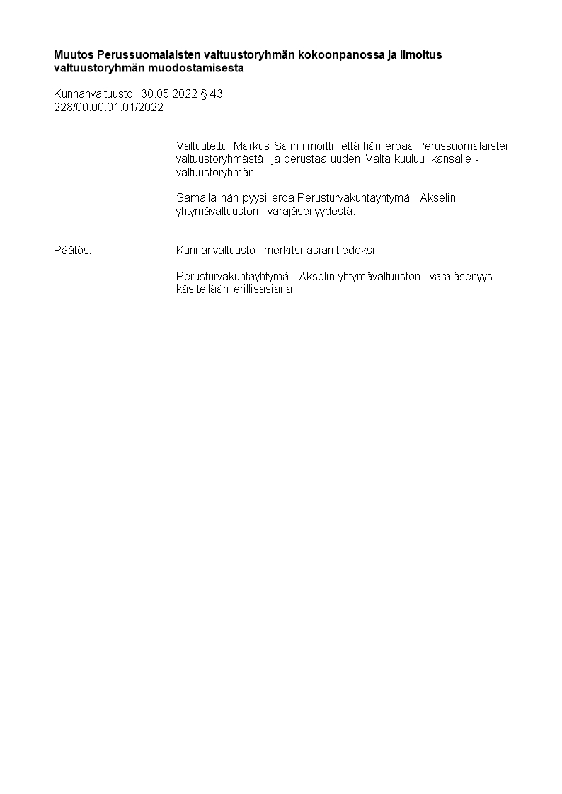Pöytäkirja 30.05.2022/Pykälä 43