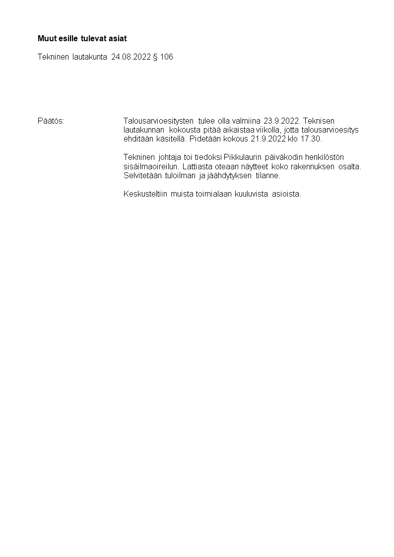 Pöytäkirja 24.08.2022/Pykälä 106