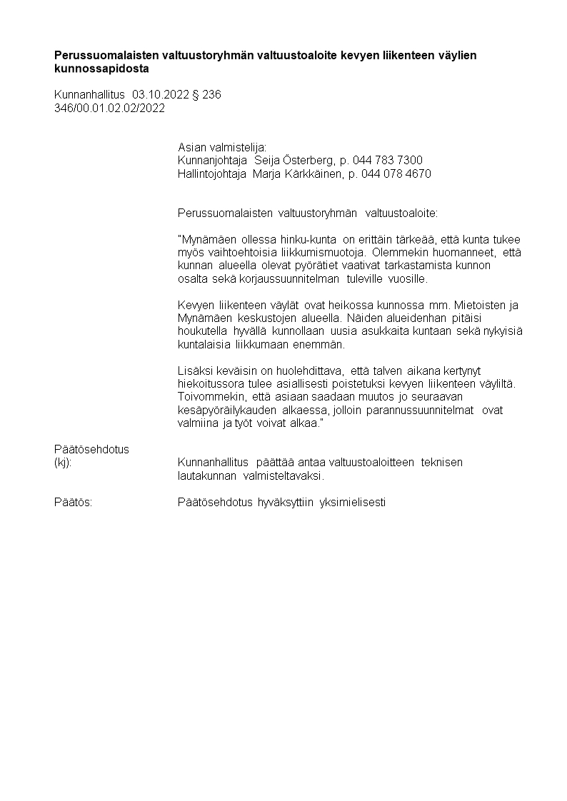 Pöytäkirja 03.10.2022/Pykälä 236
