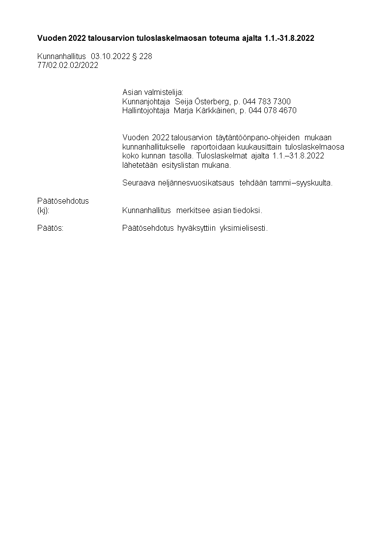 Pöytäkirja 03.10.2022/Pykälä 228