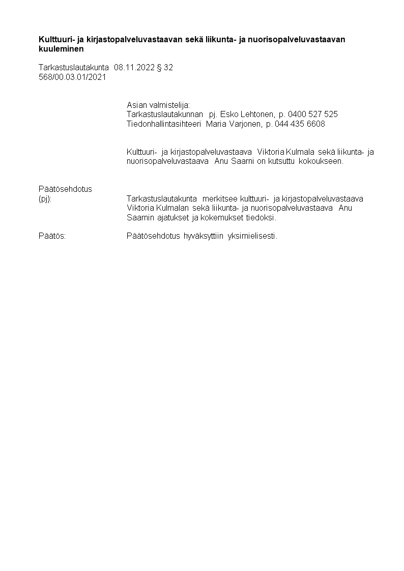 Pöytäkirja 08.11.2022/Pykälä 32