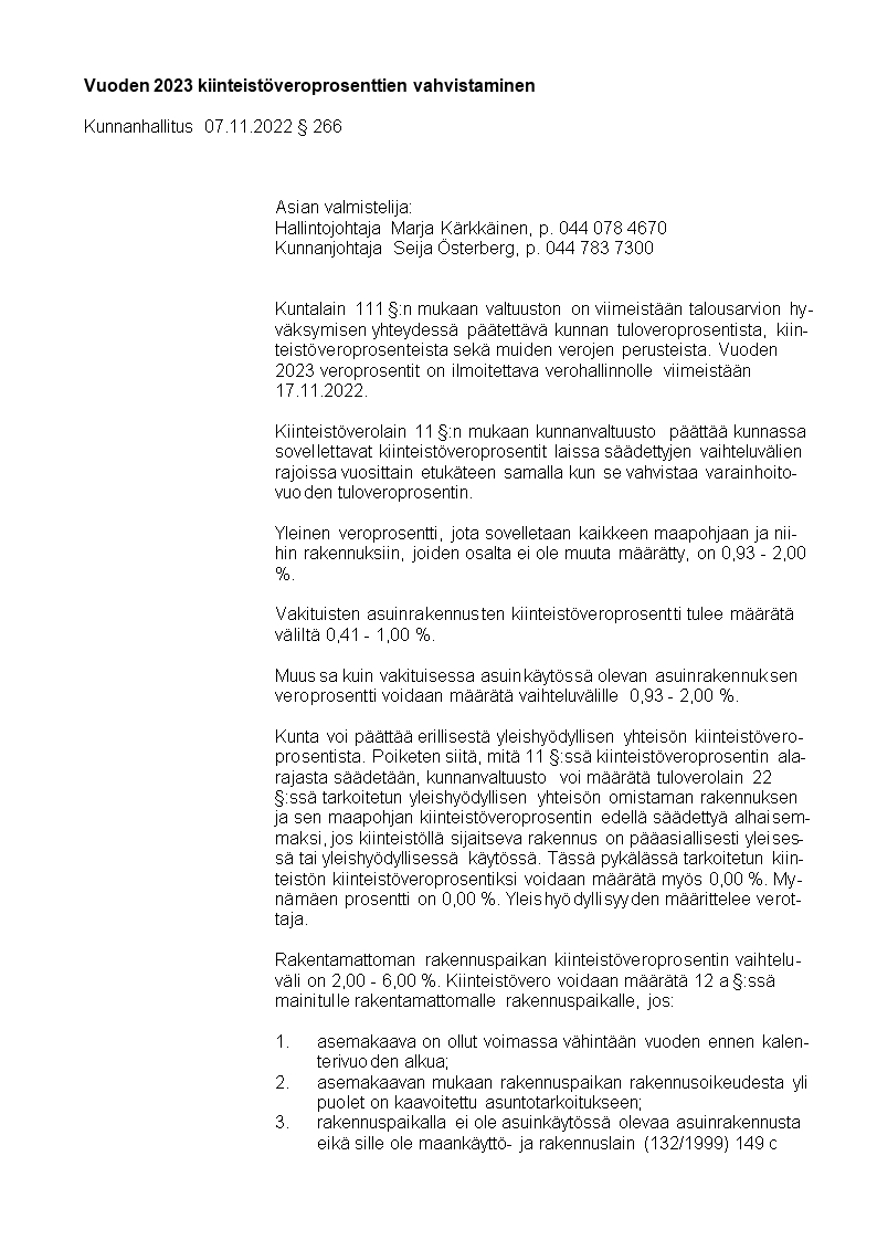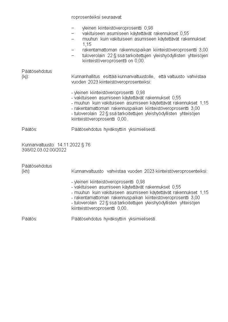 Pöytäkirja 14.11.2022/Pykälä 76