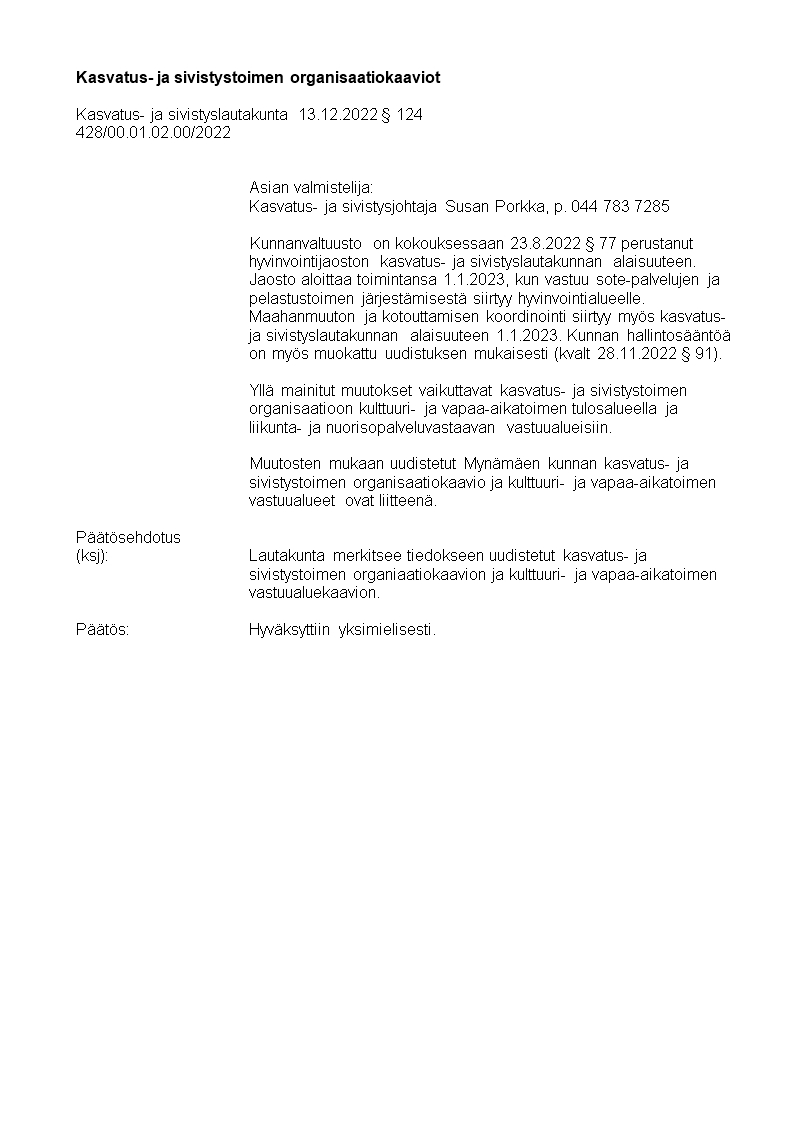 Pöytäkirja 13.12.2022/Pykälä 124