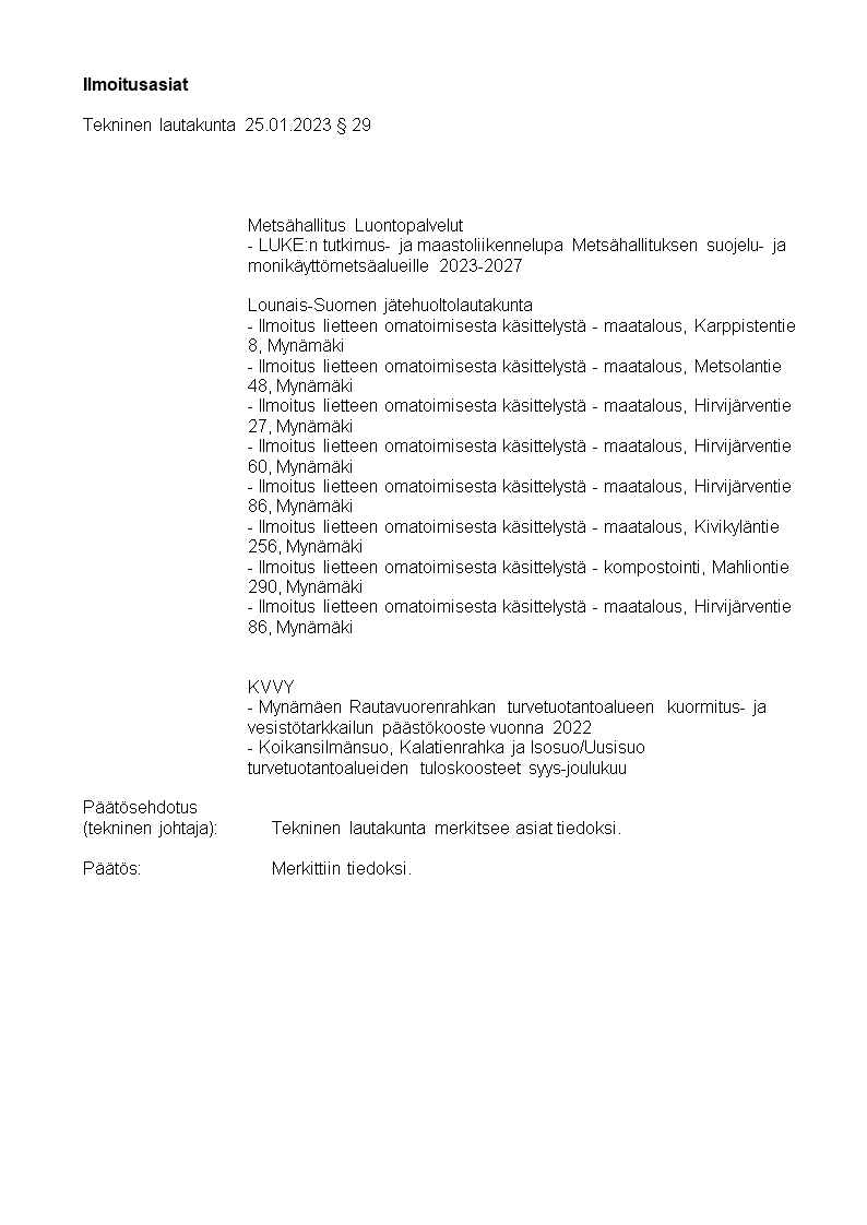 Pöytäkirja 25.01.2023/Pykälä 29