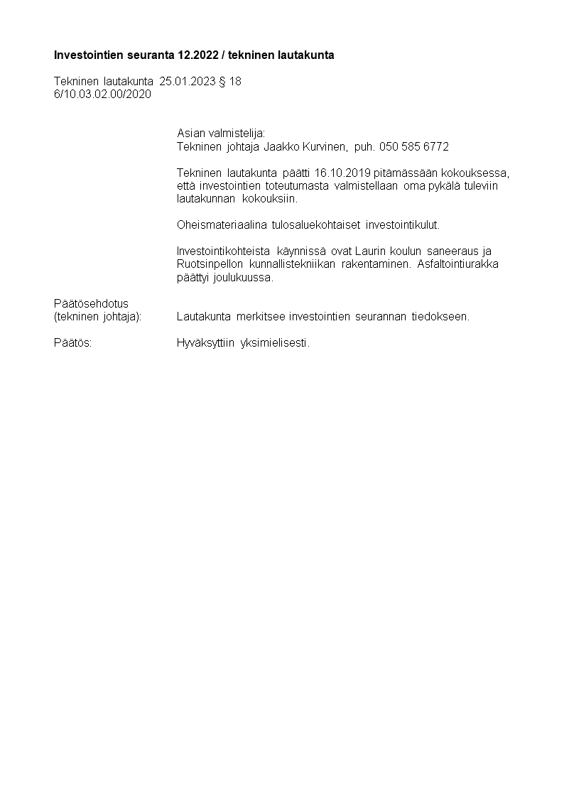 Pöytäkirja 25.01.2023/Pykälä 18
