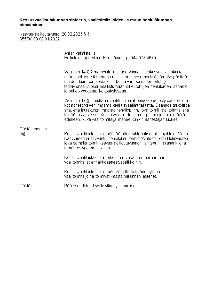 Pöytäkirja 20.02.2023/Pykälä 3