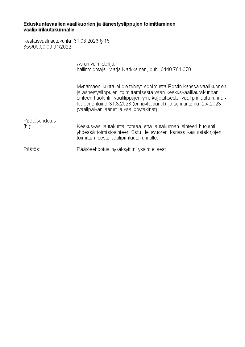 Pöytäkirja 31.03.2023/Pykälä 15