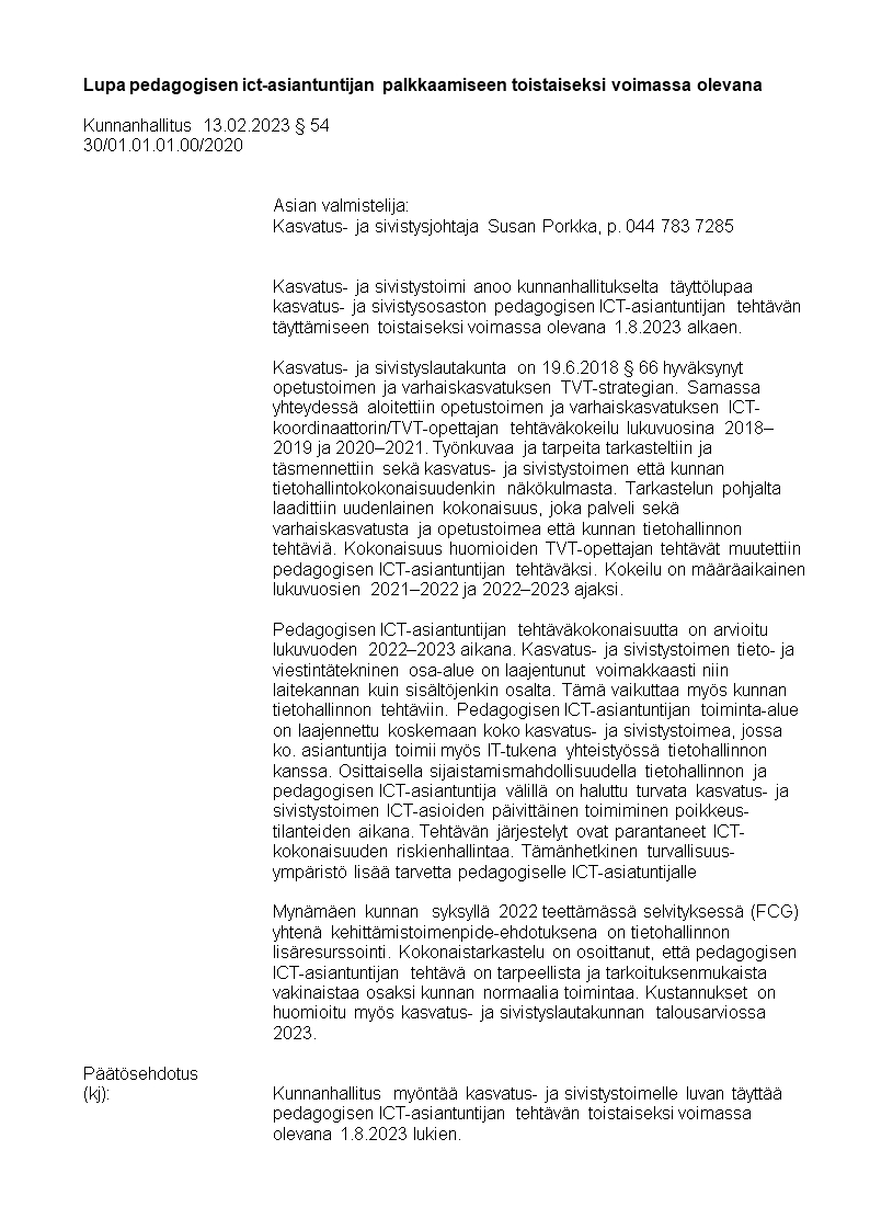 Pöytäkirja 13.02.2023/Pykälä 54