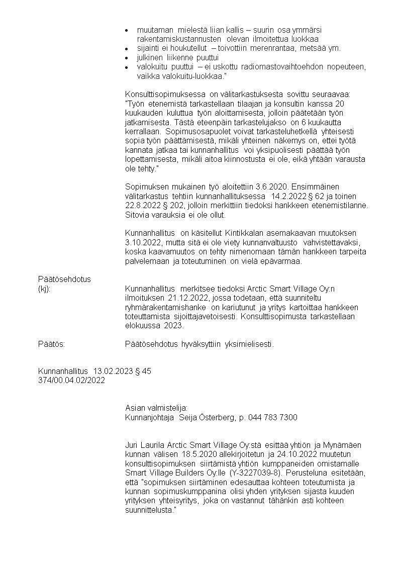 Pöytäkirja 13.02.2023/Pykälä 45
