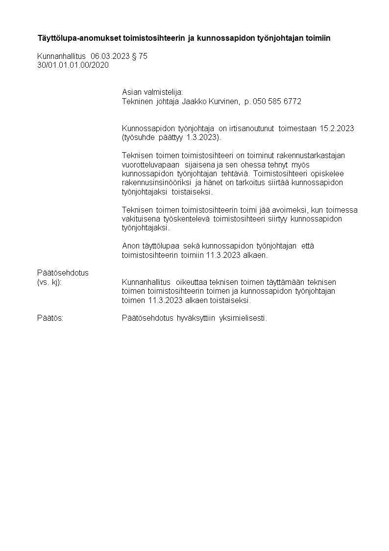 Pöytäkirja 06.03.2023/Pykälä 75
