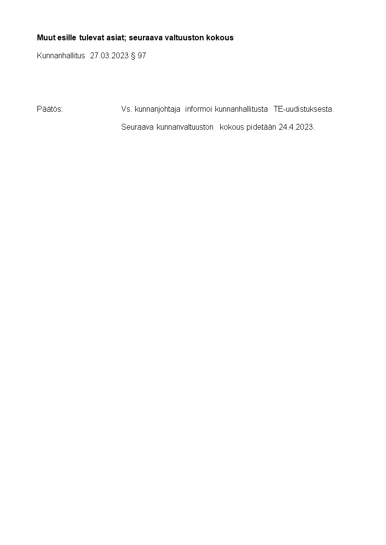 Pöytäkirja 27.03.2023/Pykälä 97