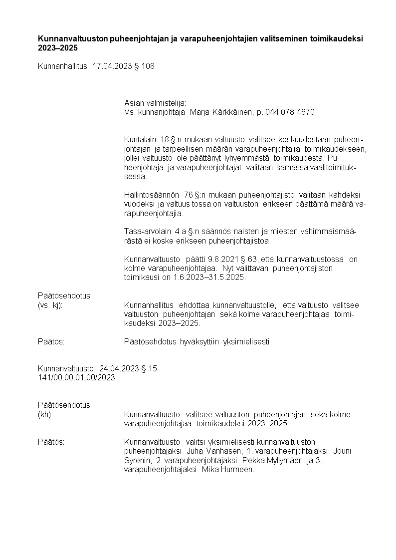 Pöytäkirja 24.04.2023/Pykälä 15