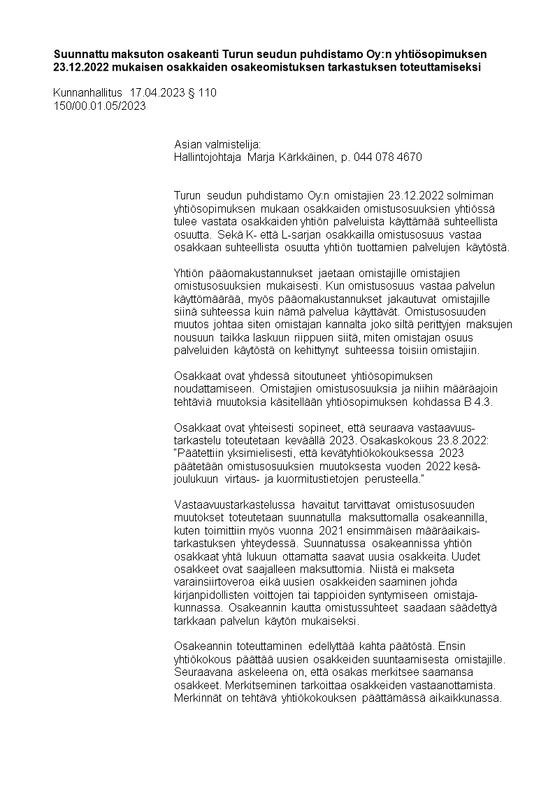 Pöytäkirja 17.04.2023/Pykälä 110