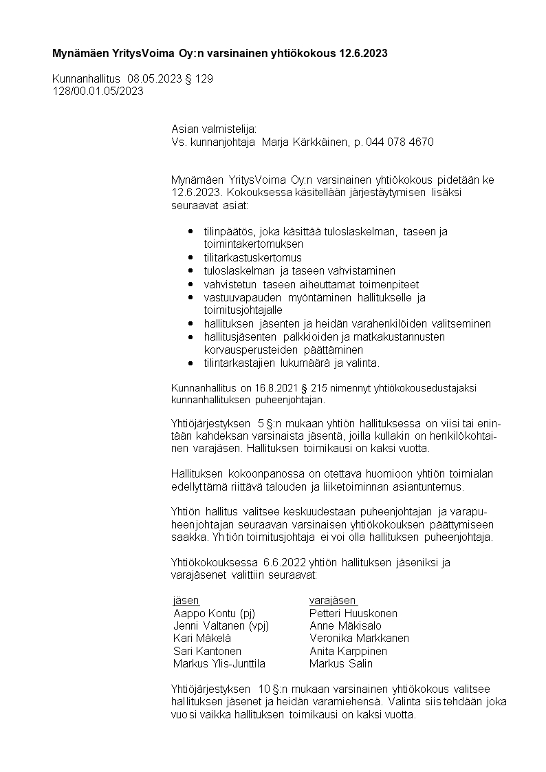 Pöytäkirja 08.05.2023/Pykälä 129