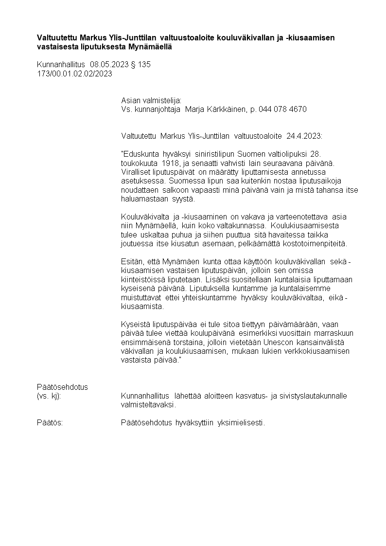 Pöytäkirja 08.05.2023/Pykälä 135