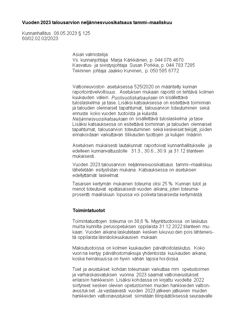 Pöytäkirja 08.05.2023/Pykälä 125