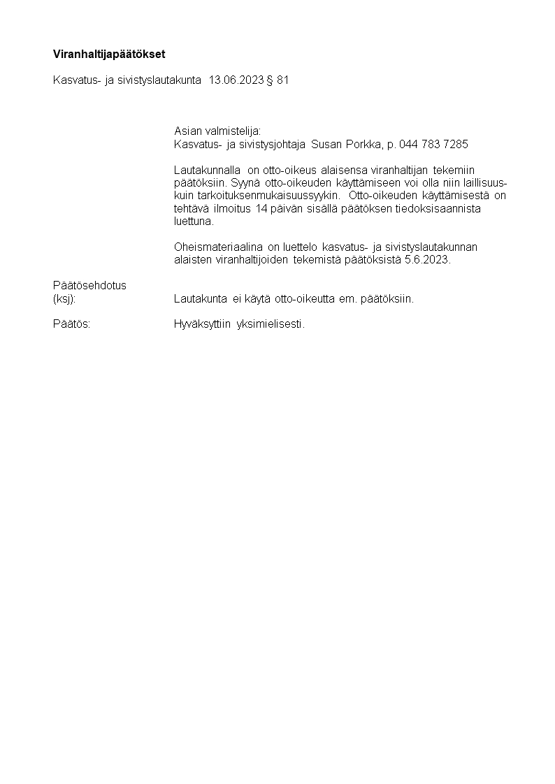 Pöytäkirja 13.06.2023/Pykälä 81