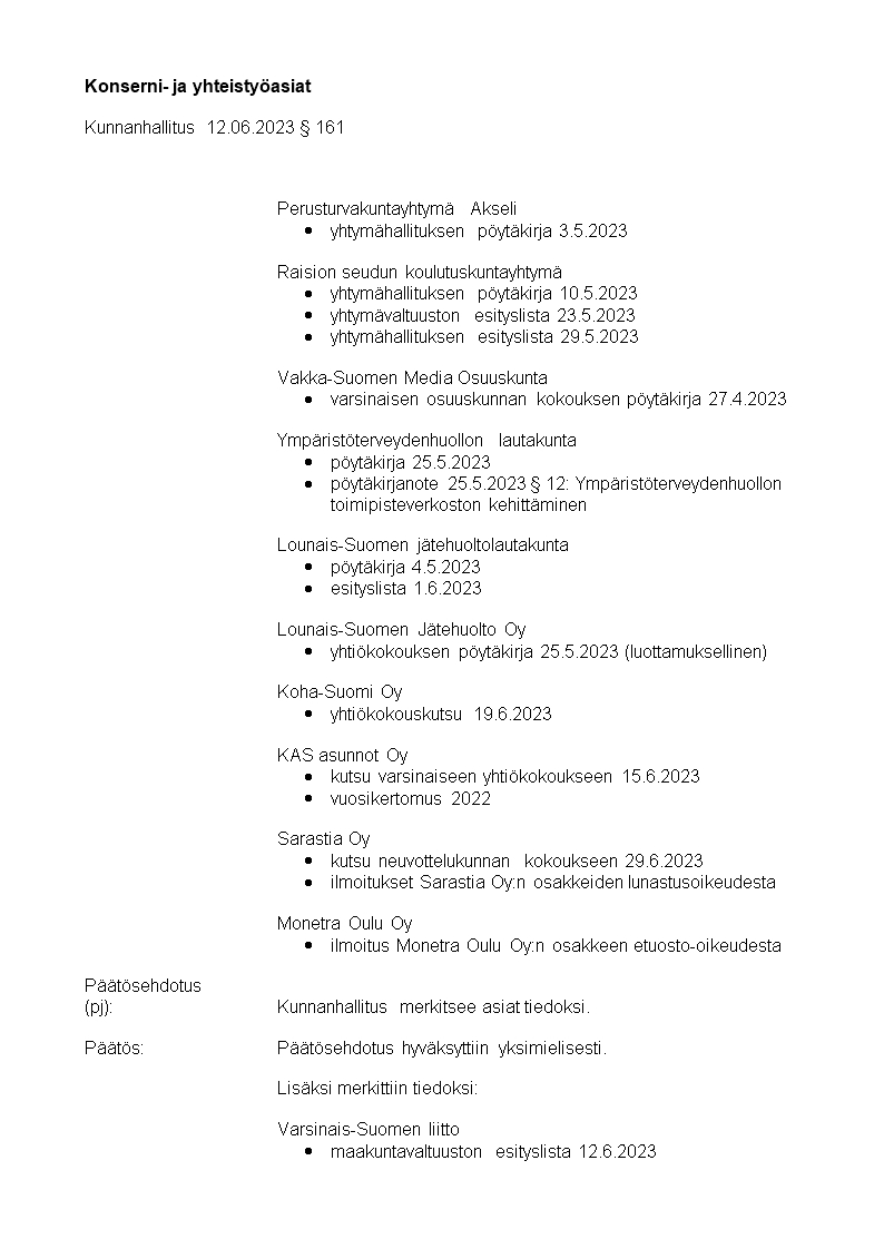 Pöytäkirja 12.06.2023/Pykälä 161