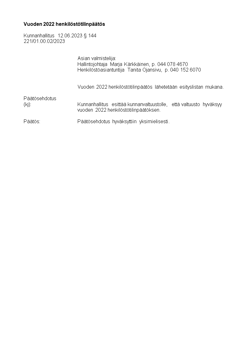 Pöytäkirja 12.06.2023/Pykälä 144