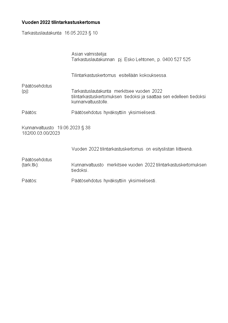 Pöytäkirja 19.06.2023/Pykälä 38