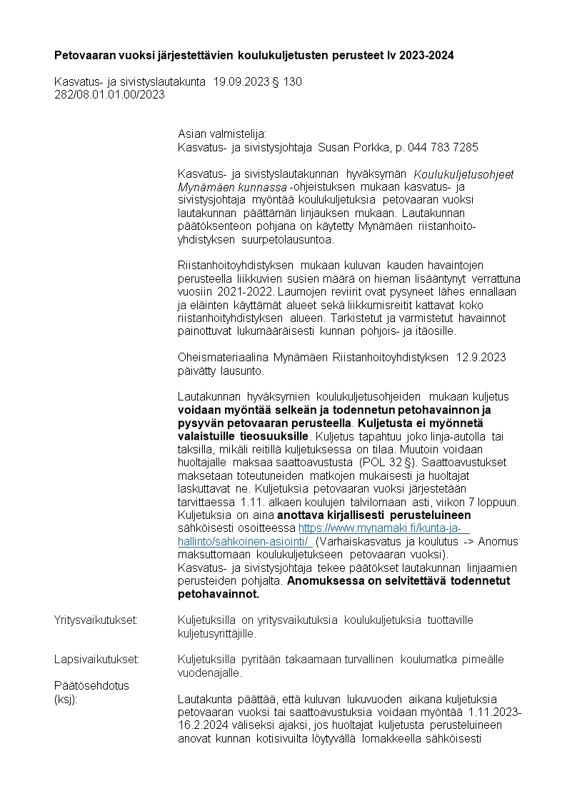Pöytäkirja 19.09.2023/Pykälä 103