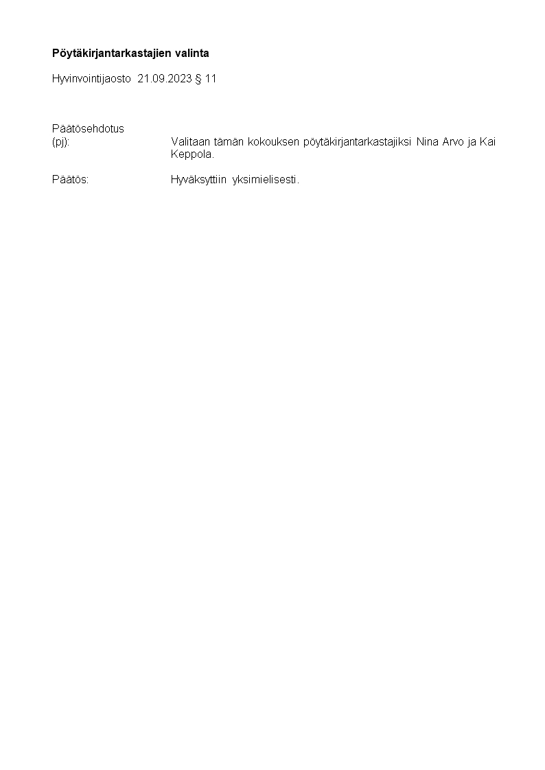 Pöytäkirja 21.09.2023/Pykälä 11