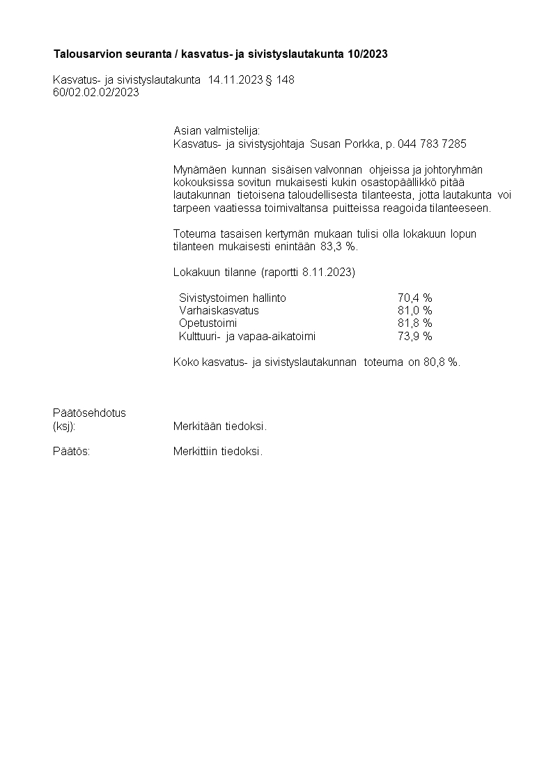 Pöytäkirja 14.11.2023/Pykälä 121