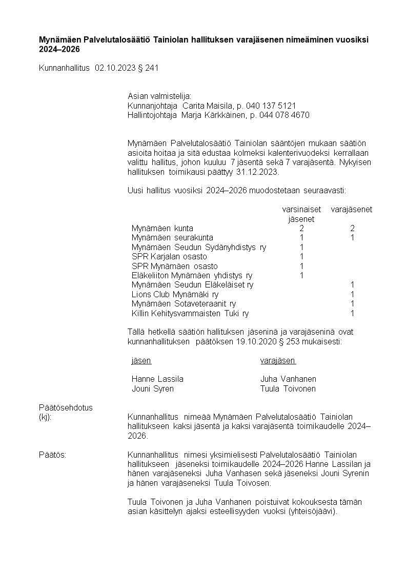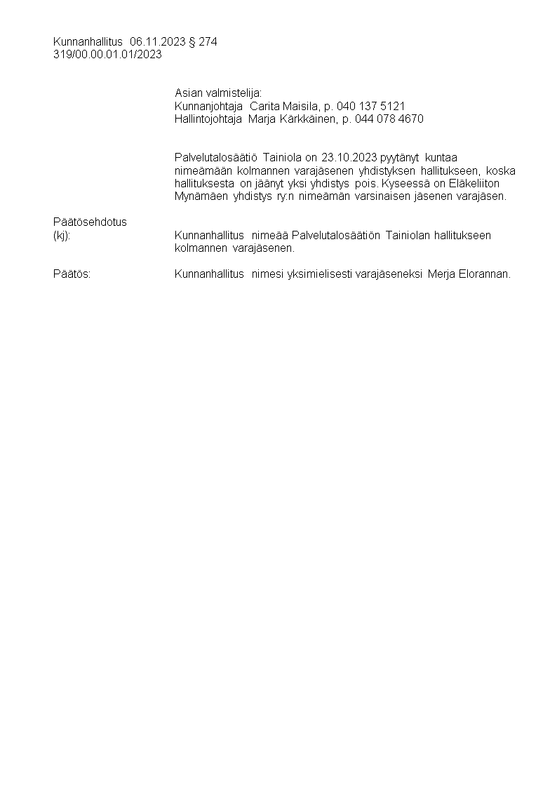 Pöytäkirja 06.11.2023/Pykälä 274