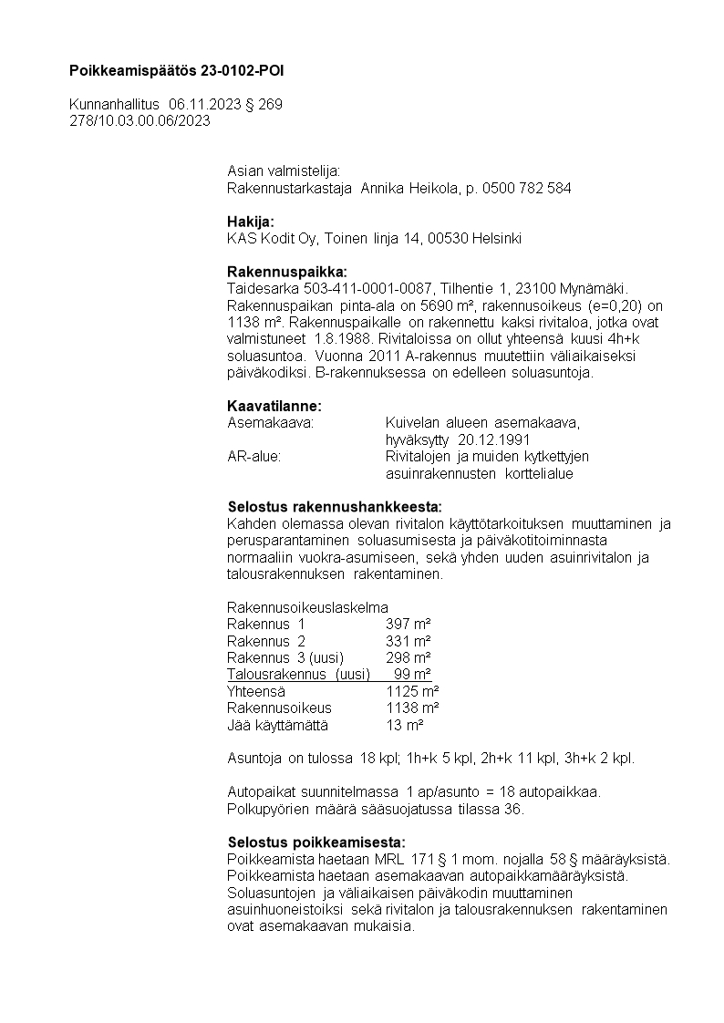 Pöytäkirja 06.11.2023/Pykälä 269