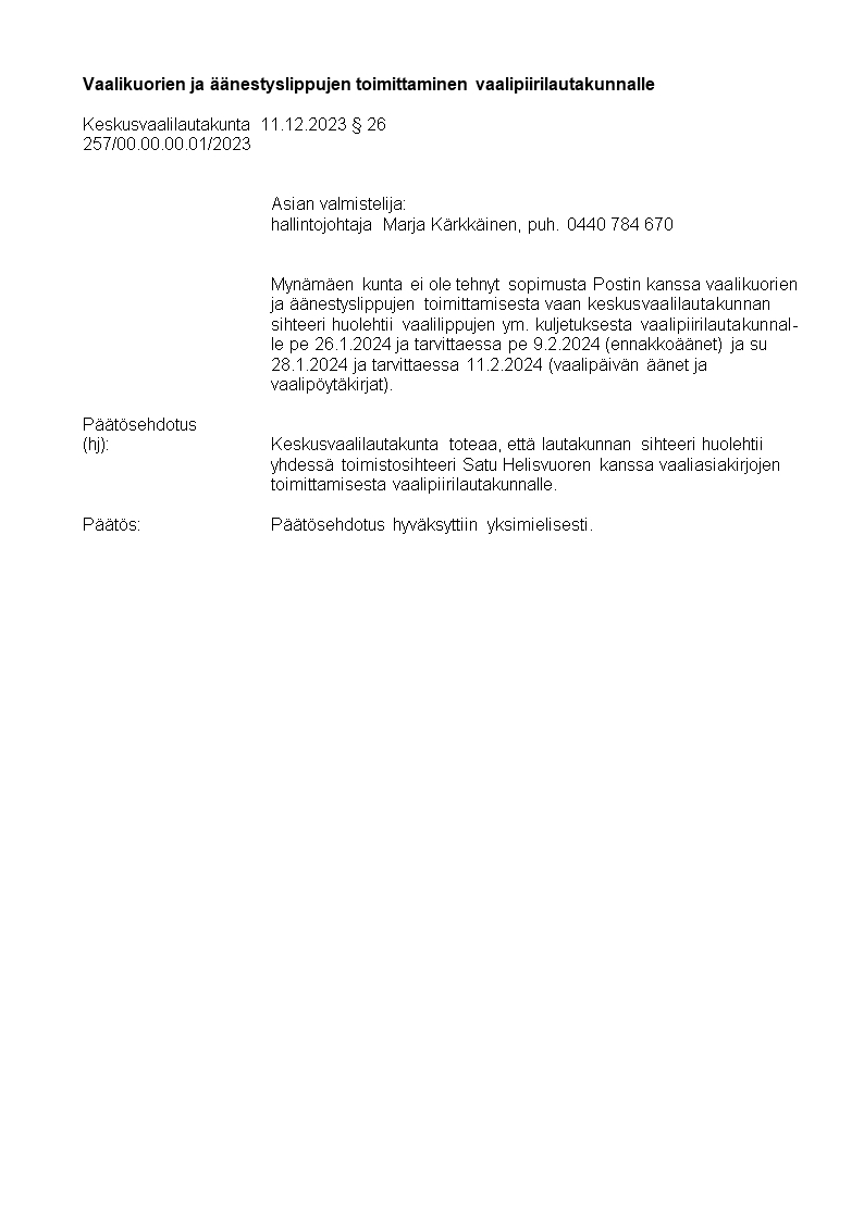 Pöytäkirja 11.12.2023/Pykälä 26