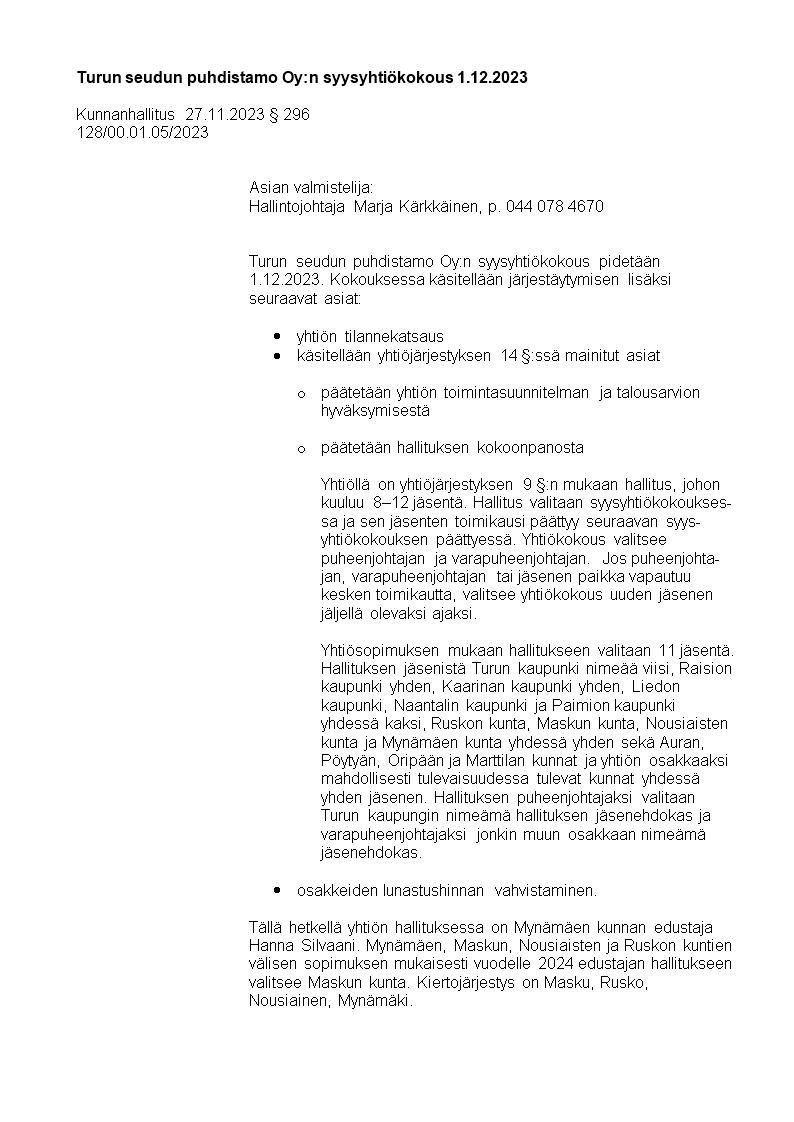 Pöytäkirja 27.11.2023/Pykälä 296