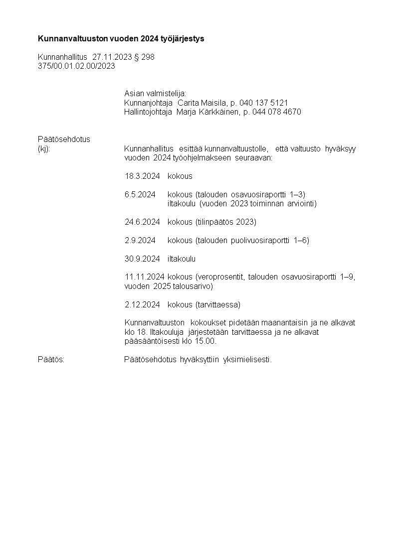 Pöytäkirja 27.11.2023/Pykälä 298