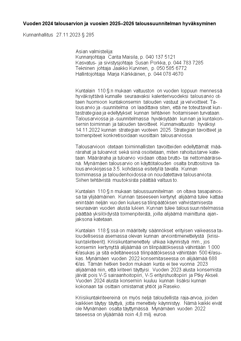Dynasty tietopalvelu Haku RSS Mynämäen kunta