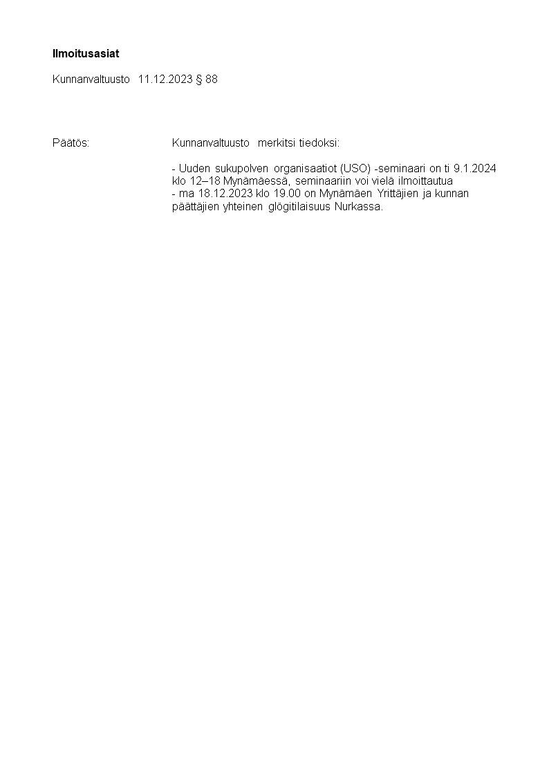 Pöytäkirja 11.12.2023/Pykälä 88