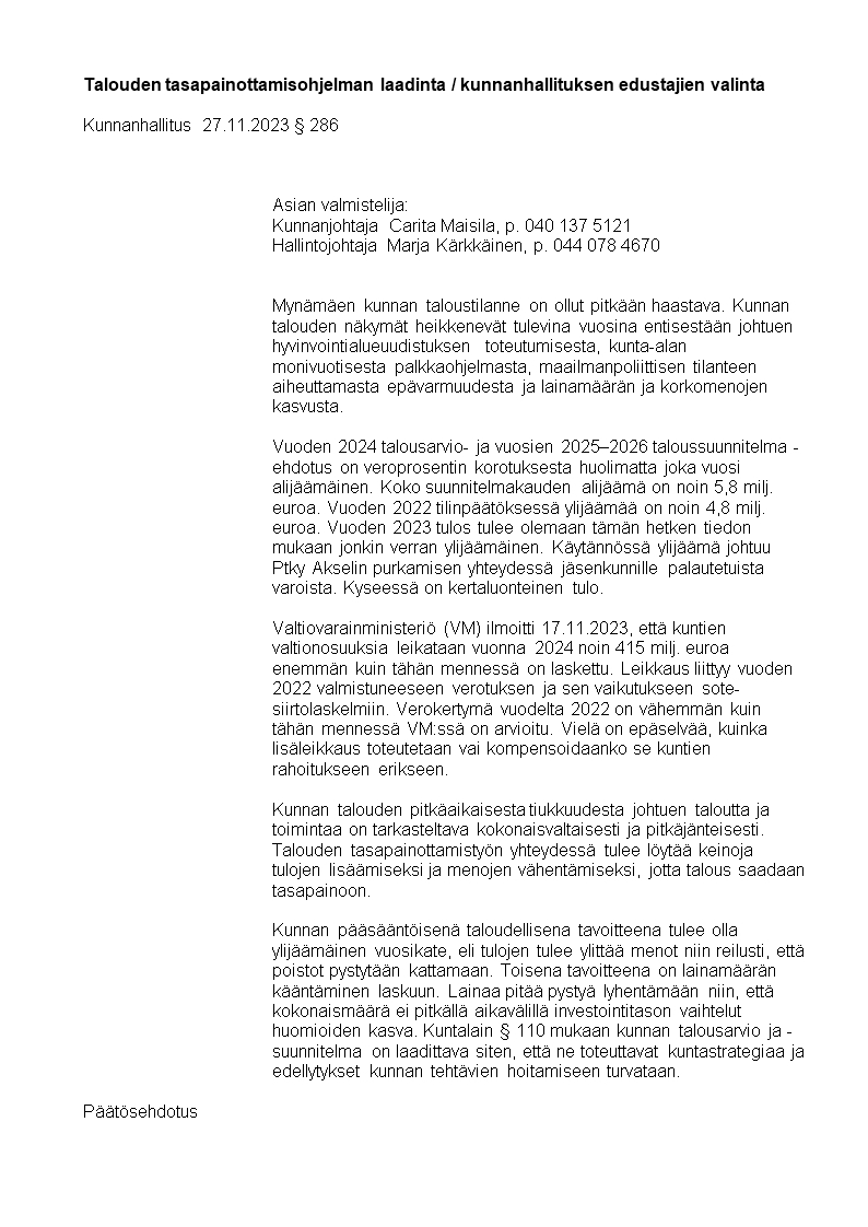 Dynasty tietopalvelu Haku RSS Mynämäen kunta