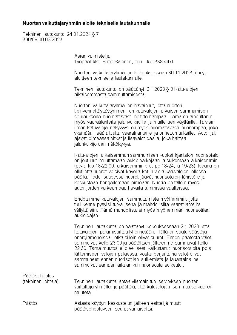 Pöytäkirja 24.01.2024/Pykälä 7