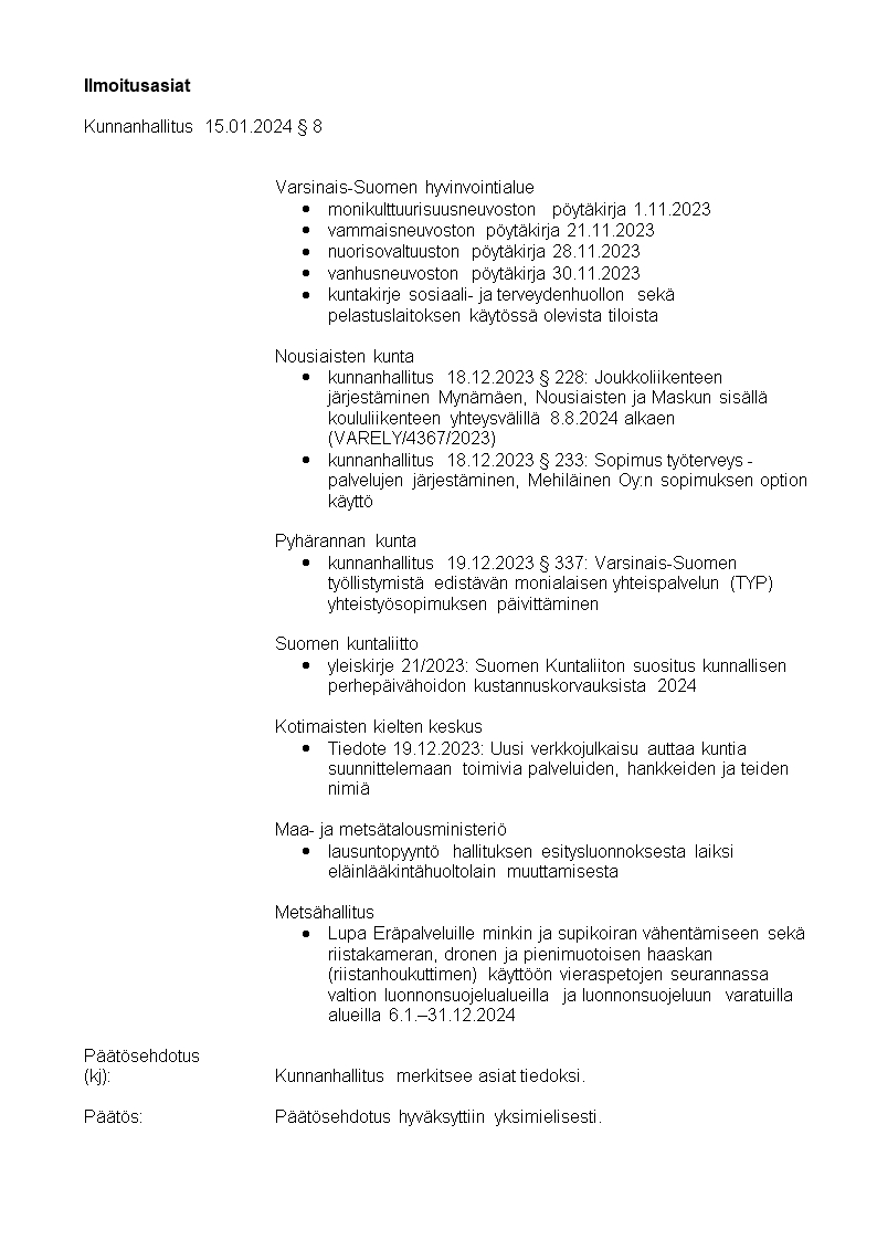 Pöytäkirja 15.01.2024/Pykälä 8