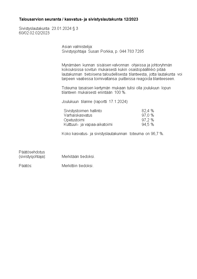 Pöytäkirja 23.01.2024/Pykälä 3