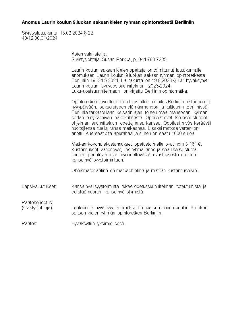 Pöytäkirja 13.02.2024/Pykälä 22