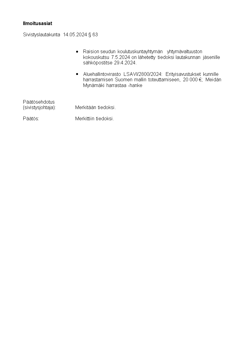 Edellinen asia | Seuraava asia Kokousasia PDF-muodossa