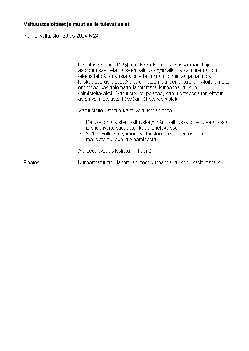 SDP:n valtuustoryhmän valtuustoaloite toisen asteen maksuttomuuden turvaamisesta |