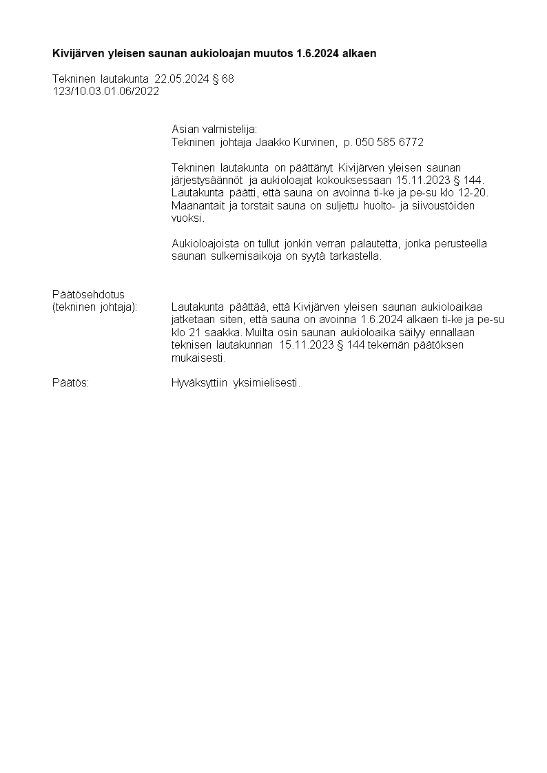 Pöytäkirja 22.05.2024/Pykälä 68